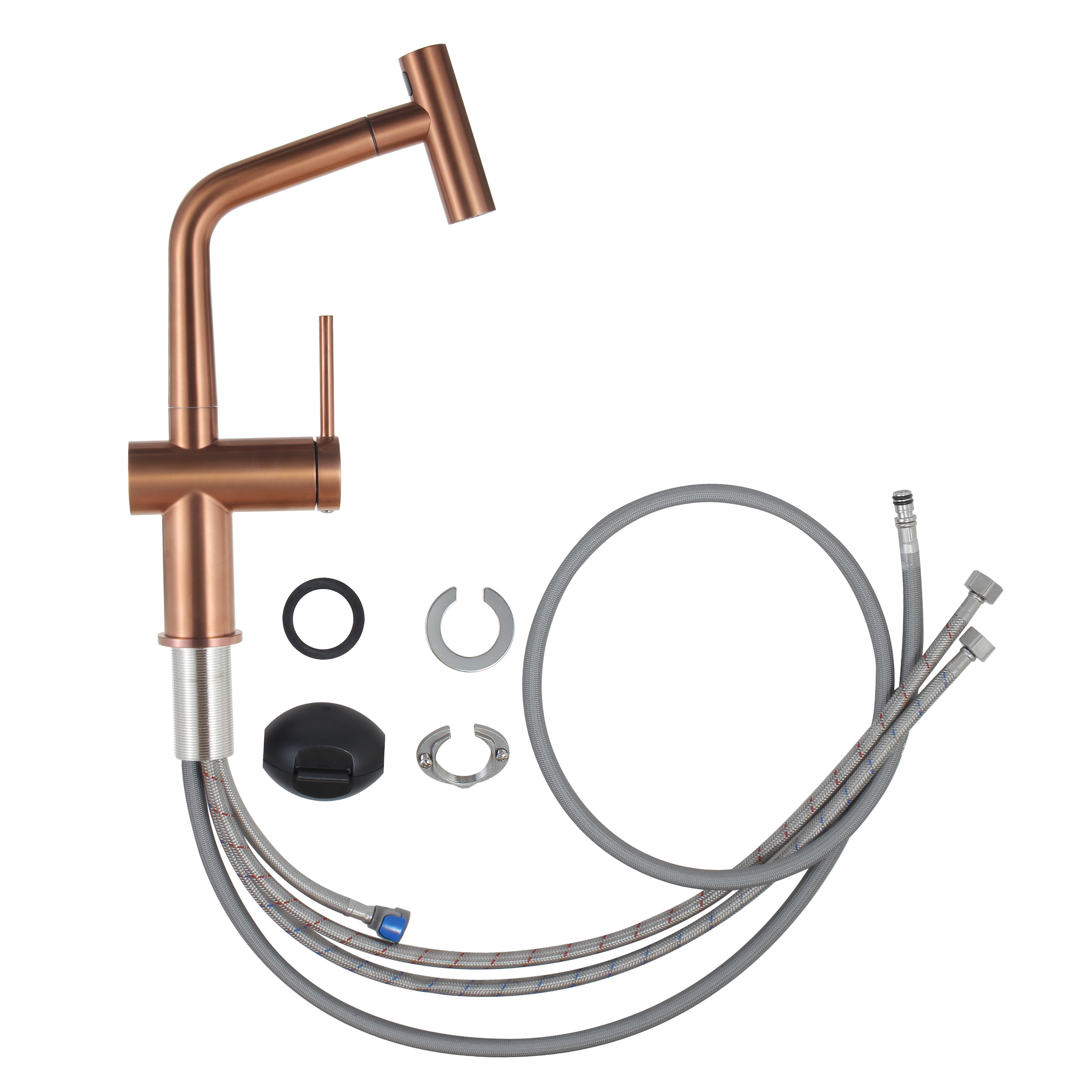 - Ceramia Timeless mitigeur d'évier à levier en acier inoxydable avec douchette extractible, monotrou, cuivre brossé (TMLKF185BCP)