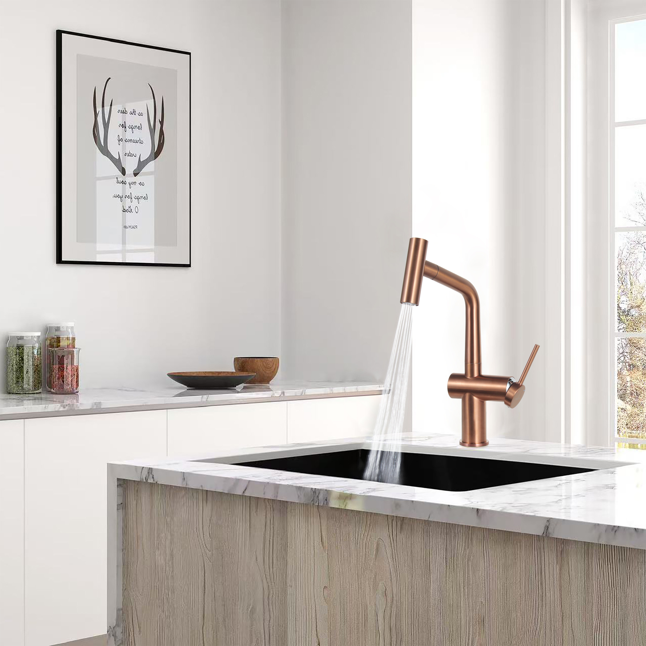 Timeless mitigeur d'évier à levier en acier inoxydable avec douchette extractible, monotrou, cuivre brossé (TMLKF185BCP) :