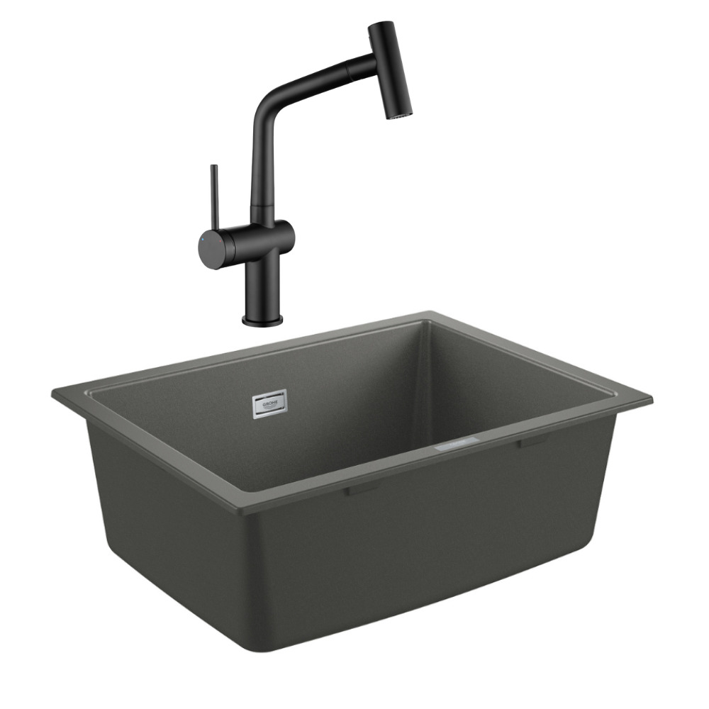 Grohe K700U evier composite + Ceramia Timeless mitigeur (G31655TML1BM-SET)