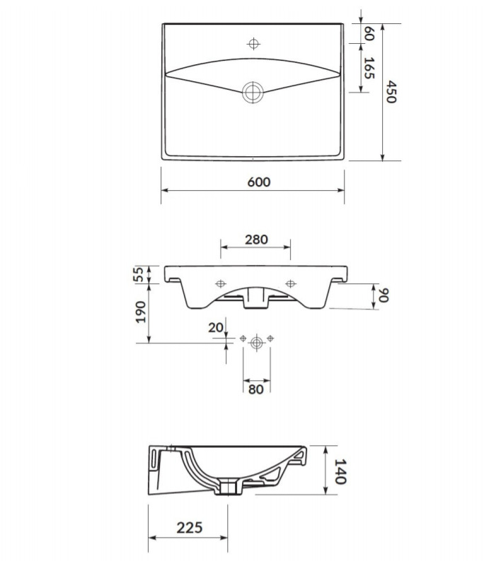 Caractéristique du Lavabo Brevis Swiss Aqua Technologies suspendu avec trou pour robinetterie au milieu, 60x45x14cm (SATBRE6045S) :
