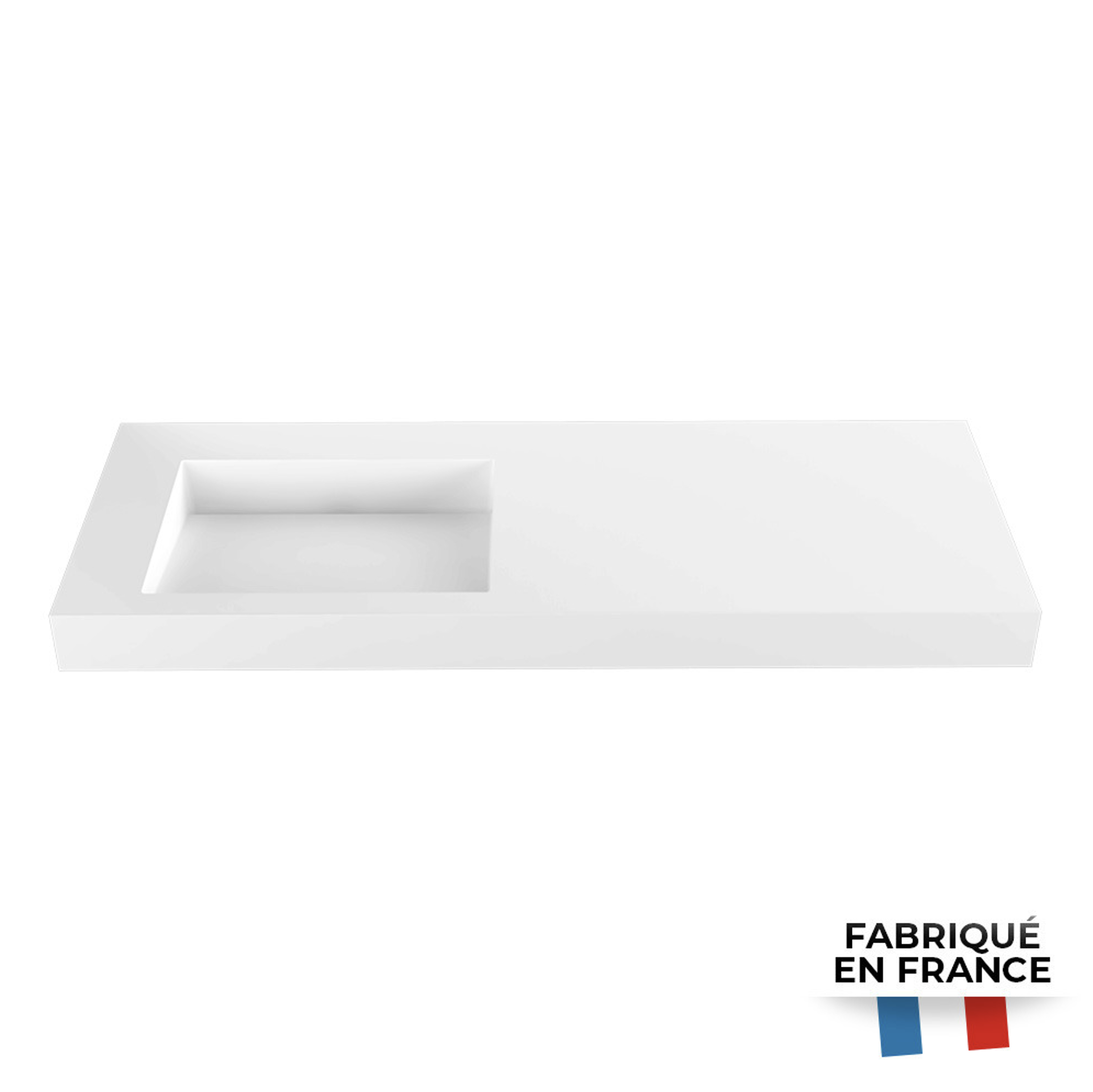 Caractéristiques du Plan vasque autoportant fabriqué en France 1200x550x100mm, en Solid Surface, blanc mat (LIVEA-1200) :