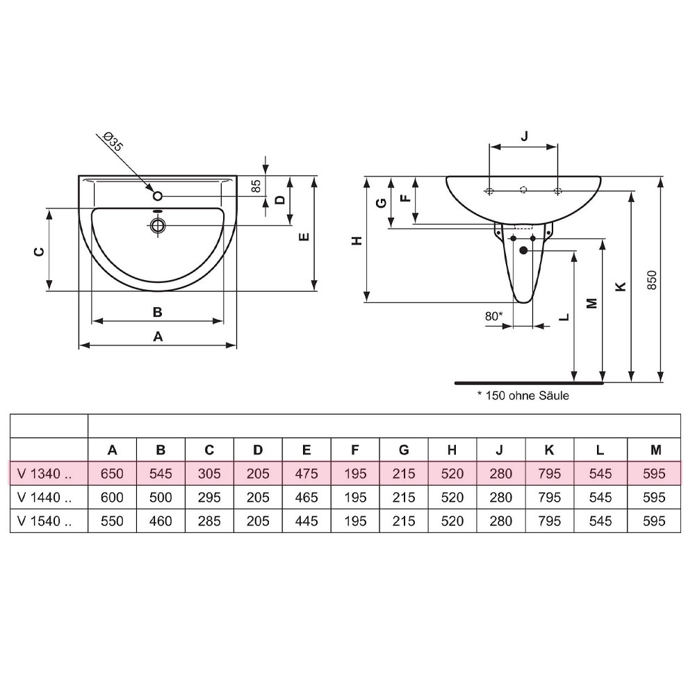 Ideal Standard EUROVIT Lavabo 215 x 650 x 475 mm, blanc (V134001)