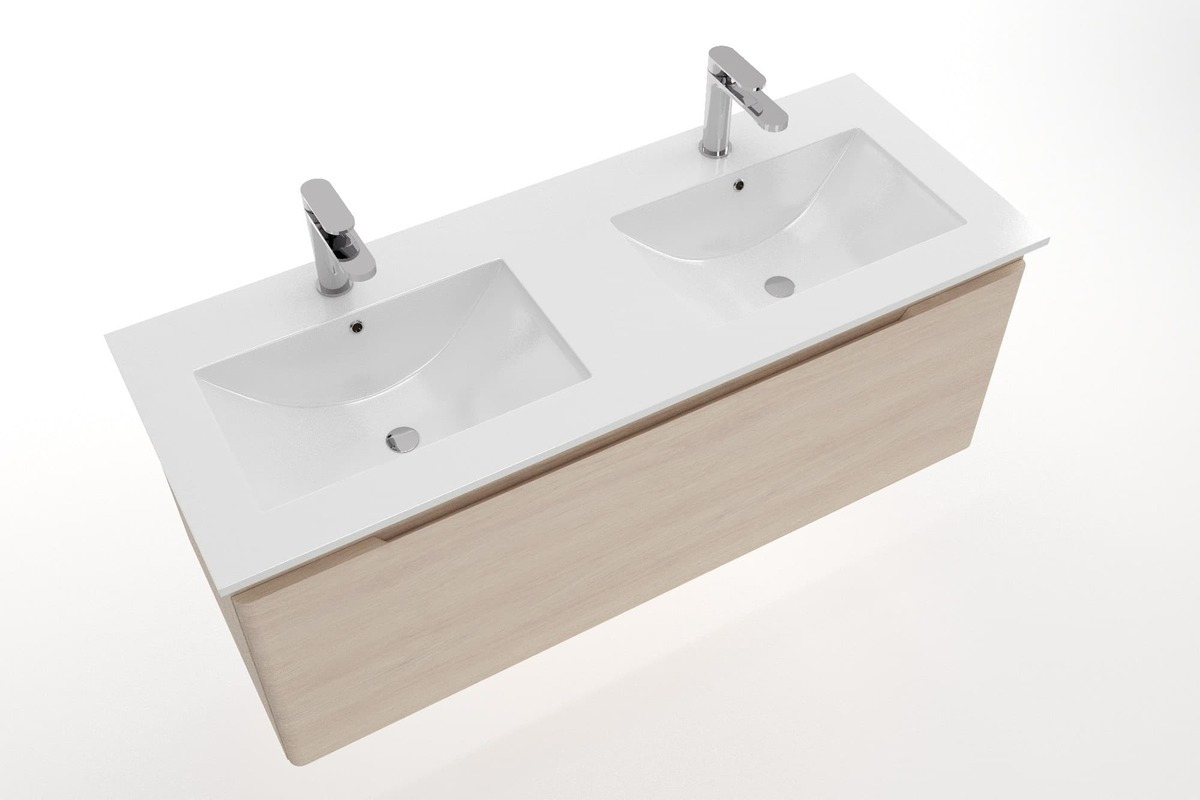 Modena 121x46 cm double vasque en céramique, 2 trous pour robinetterie, blanc (M2N12046)