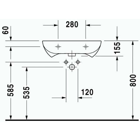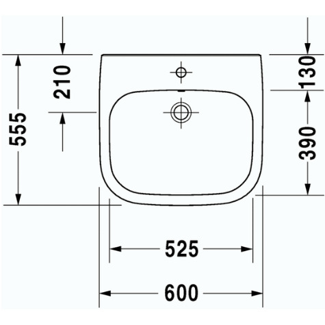 Duravit D-Code Lavabo PMR 60 cm avec trop-plein, 1 trou pour robinetterie, Blanc alpin (23126000002)
