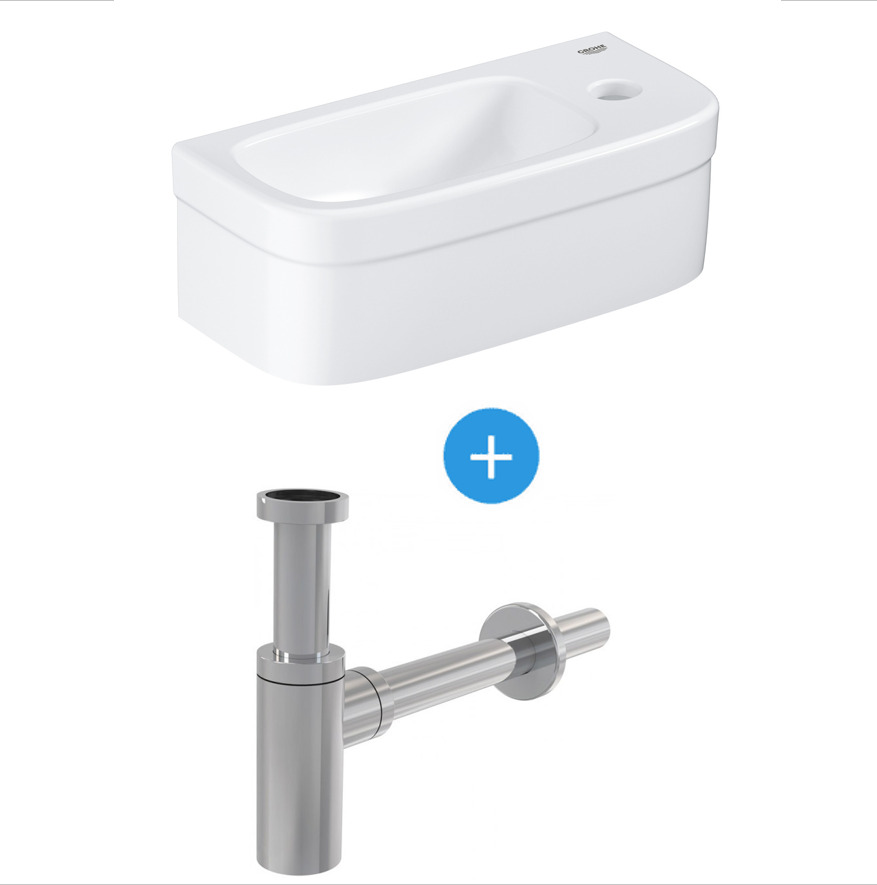 Grohe Ensemble Euro Ceramic Lave-mains 370 x 180 mm + Siphon Alca en métal Chromé (39327000-SET)