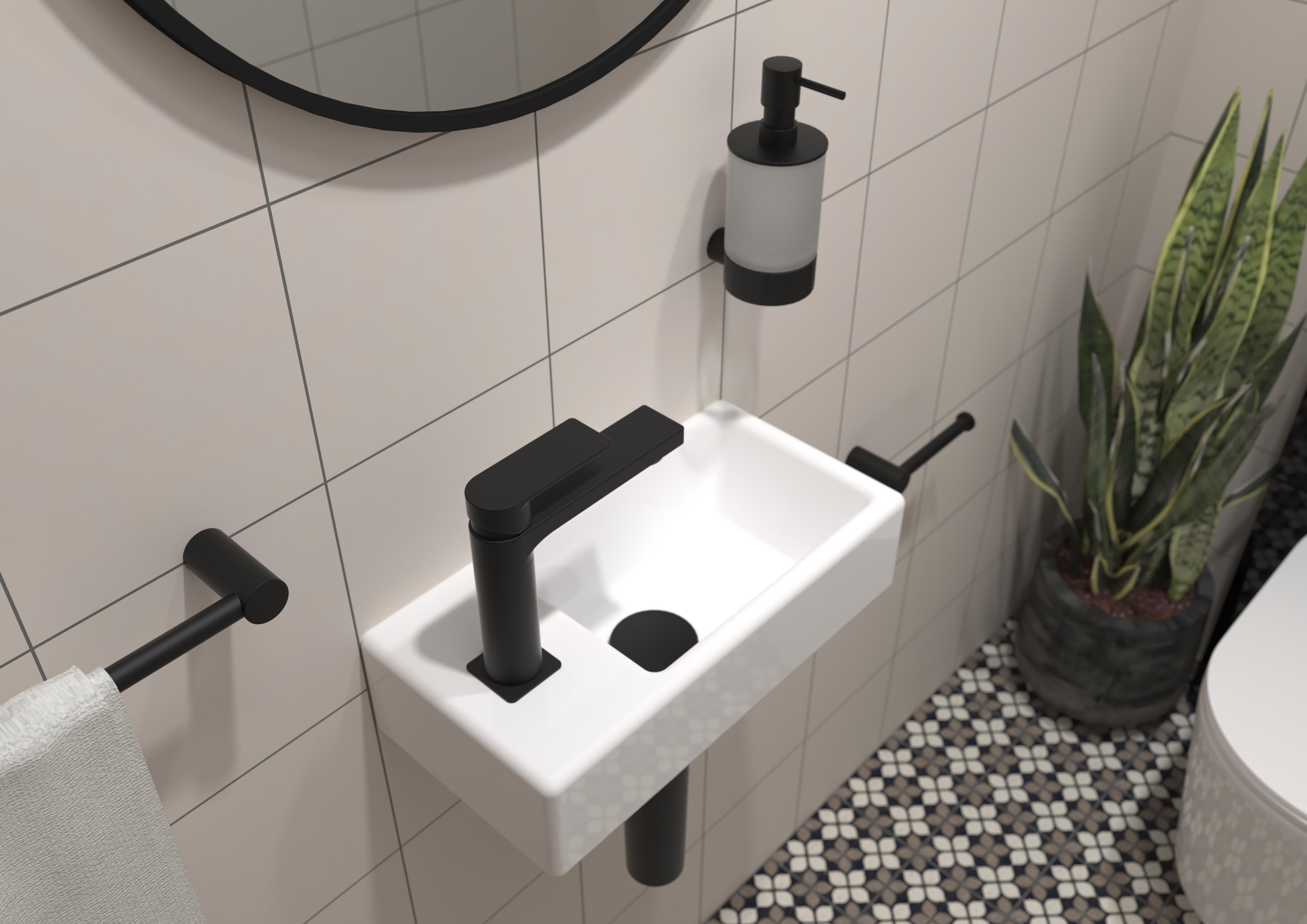 Swiss Aqua Technologies Brevis Lave-mains suspendu avec trou pour robinetterie à gauche, 40,5x20,5x10,5cm (SATBRE4020SL)