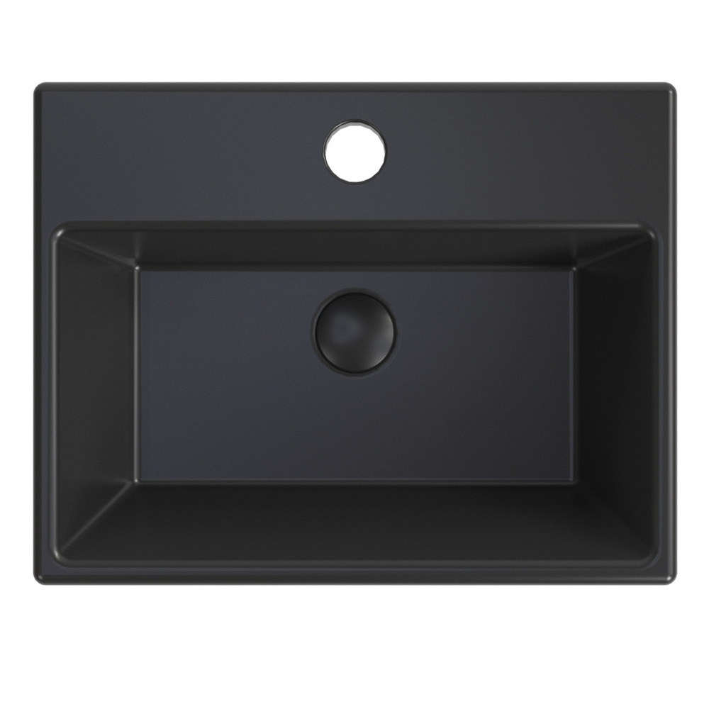Caractéristiques du Set Brevis Lave-mains suspendu avec trou pour robinetterie au milieu, 38,5x30,5x10,5cm + Bonde, Noir mat (SATBRE3830SBKM-SET3) :