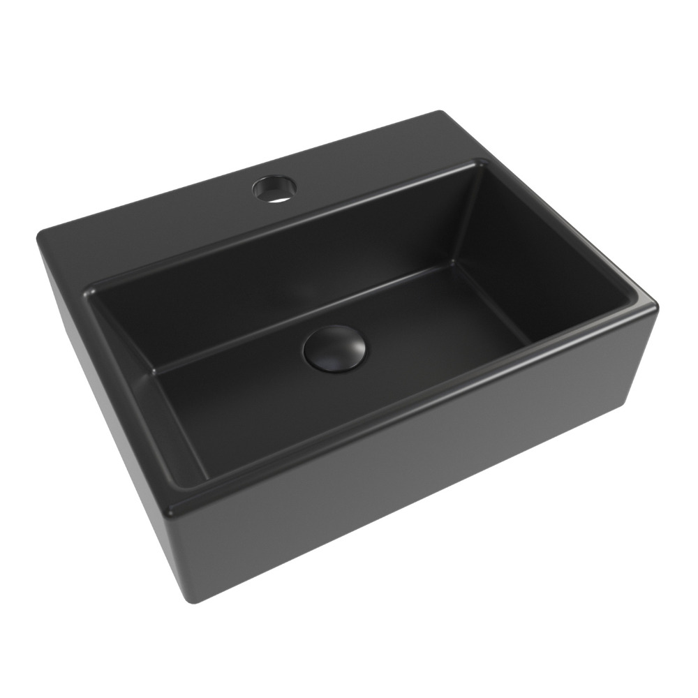 Swiss Aqua Technologies Brevis Lave-mains suspendu avec trou pour robinetterie au milieu, 38,5x30,5x10,5cm, Noir mat (SATBRE3830SBKM) :