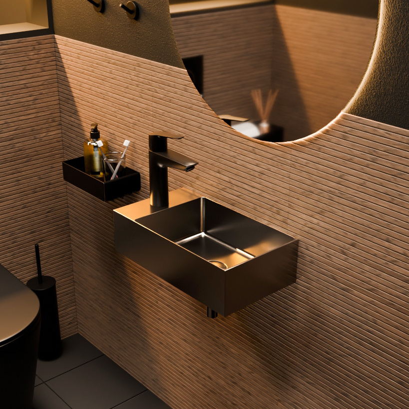 Caractéristiques du Lave mains Timeless en Acier Inoxydable 304, 40x22x11cm, Gun Métal brossé PVD (TMLW-4022BGM)