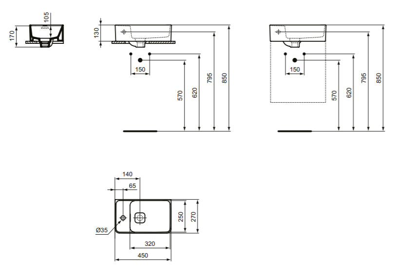 Caractéristiques du lave-mains blanc 450x270 mm Ideal Standard Strada II :