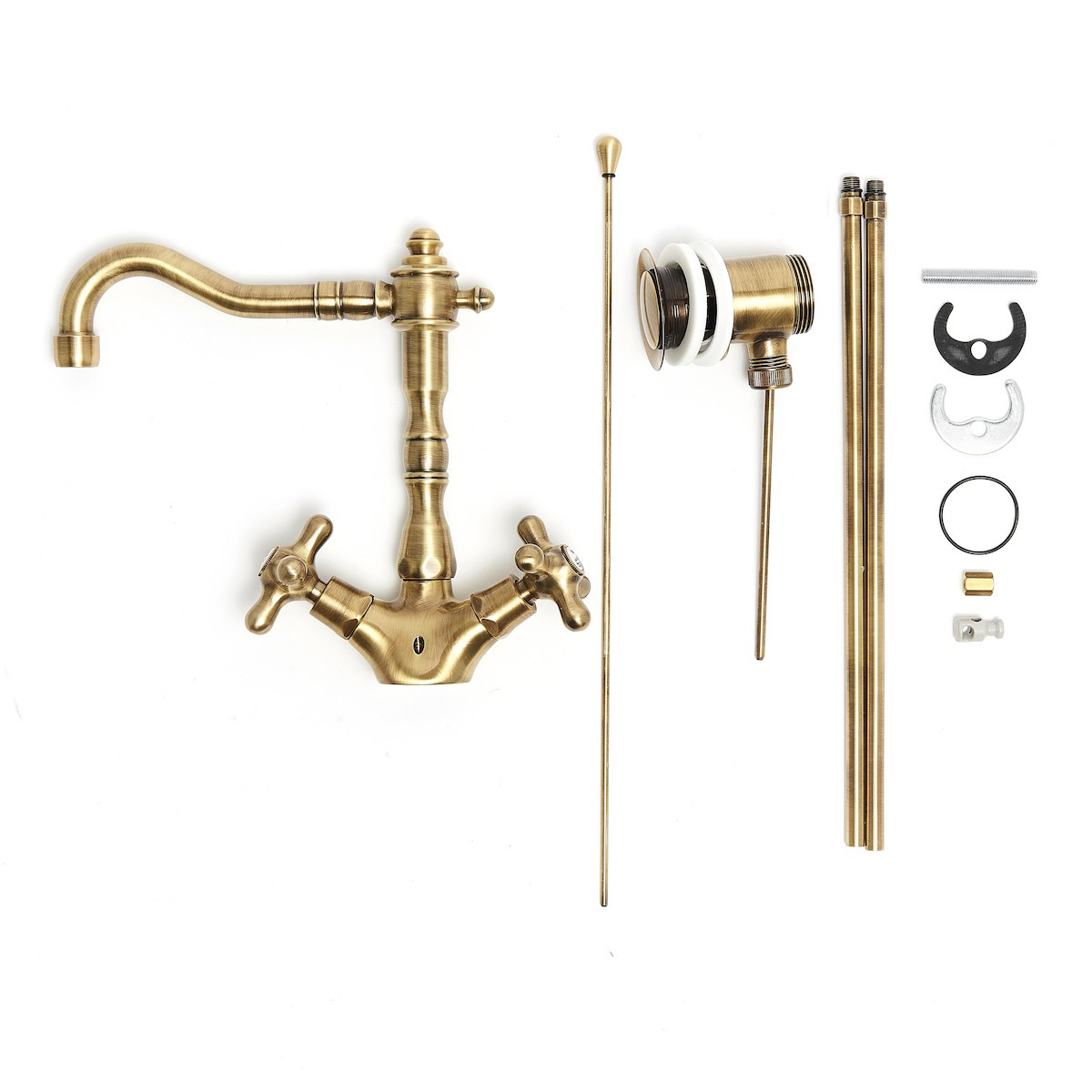 Paffoni Ricordi Mélangeur XL de lavabo avec tirette et bonde, Design vintage, Bronze (IR085BR)