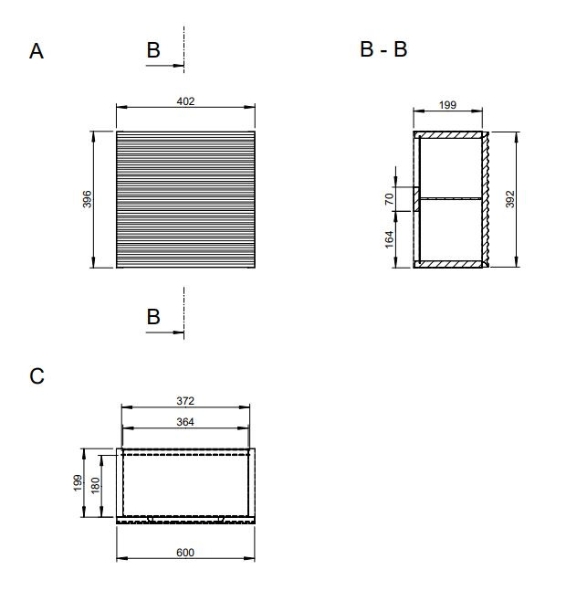 Meuble de salle de bain suspendu bas de couleur grise avec une surface mate mesurant 40,2x39,6x21,7 cm. Surface stratifiée.