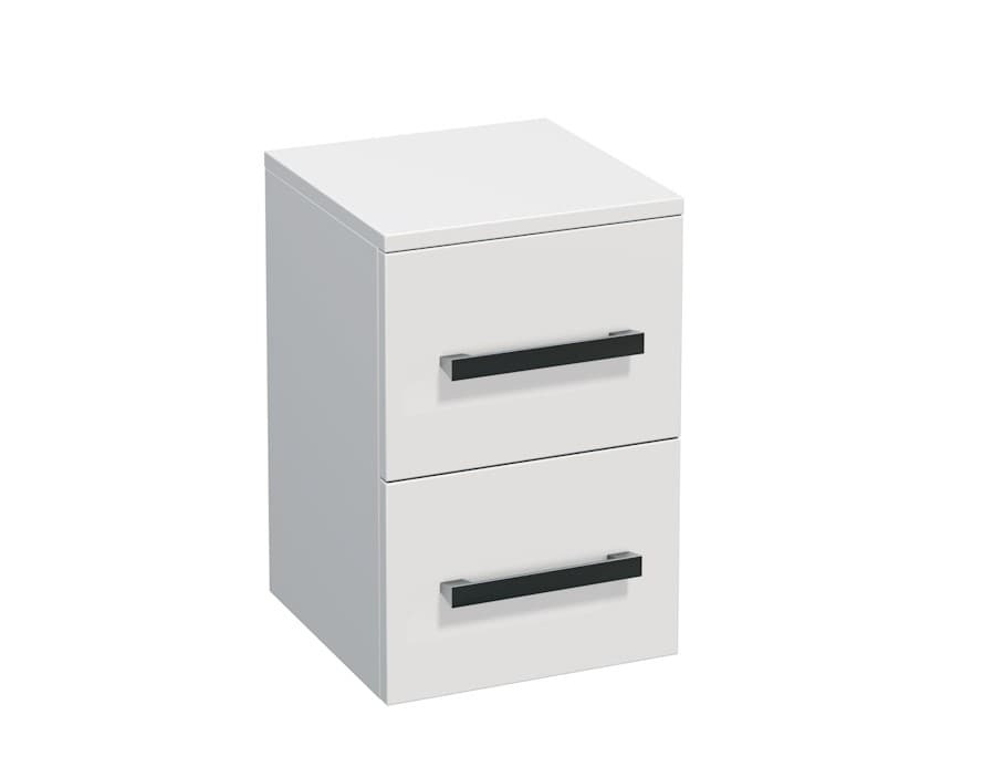 Meuble bas pratique pour la salle de bain avec deux tiroirs qui offrent un espace de rangement pour vos accessoires d'hygiène. Les tiroirs ont une extension totale avec butée.