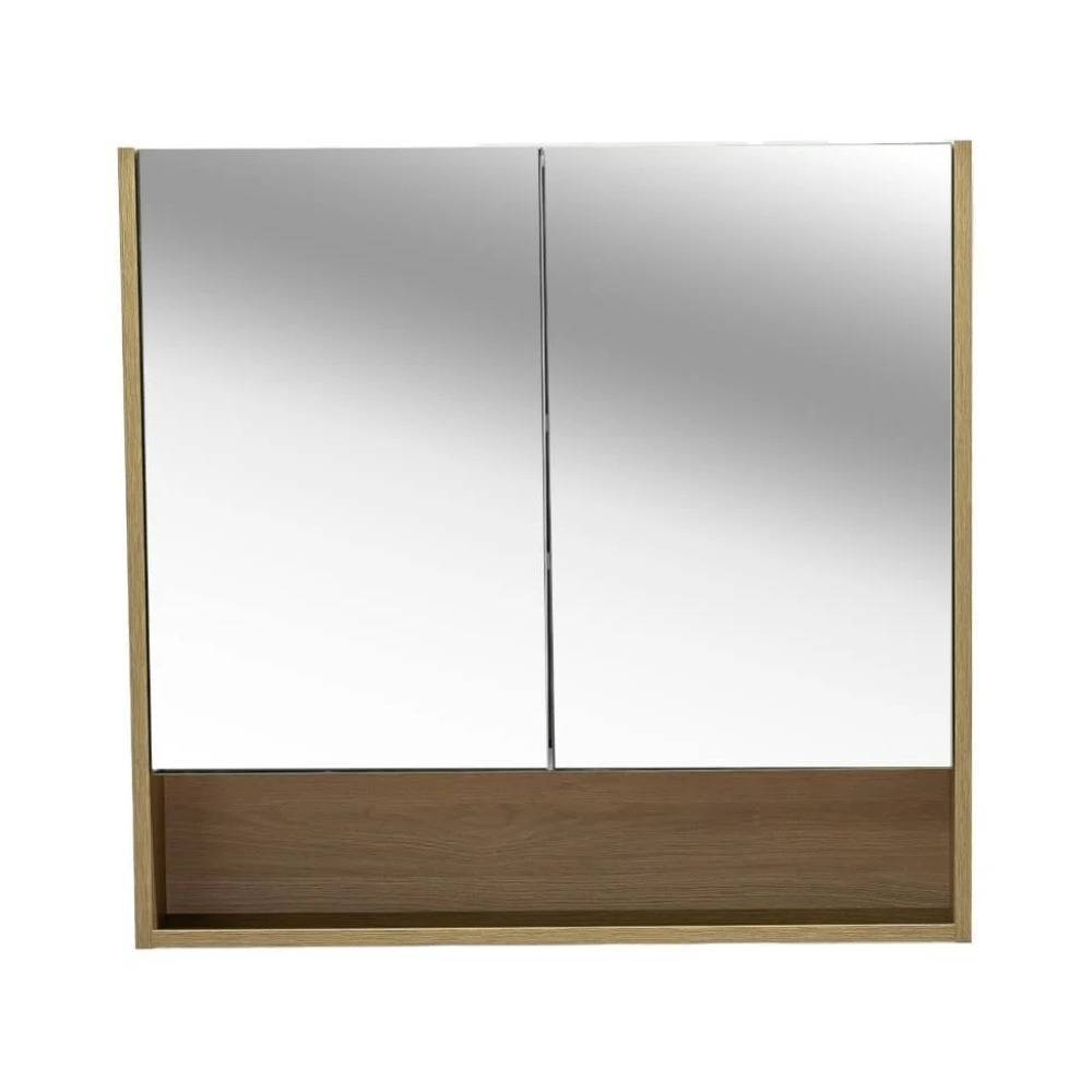Naturel Lucca Armoire de toilette assemblée 80x75 cm, stratifié, 4 étagères, miroir, couleur chêne (LUCCA80CABD)
