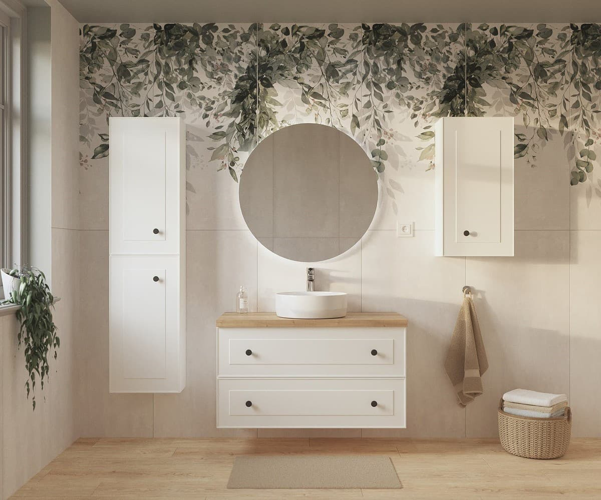 Le meuble de salle de bain Naturel Forli offre un design moderne et simple. Les armoires sont fabriquées dans un matériau blanc de haute qualité, ce qui donnera à votre salle de bain un look élégant.