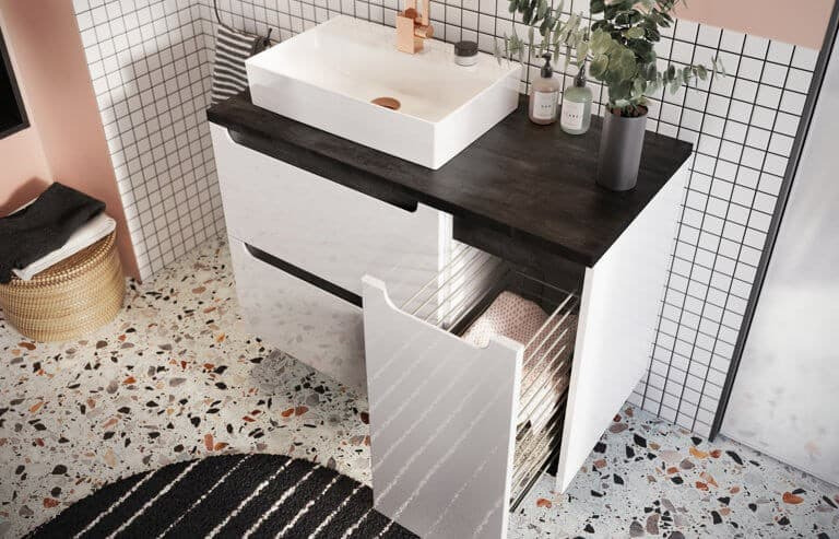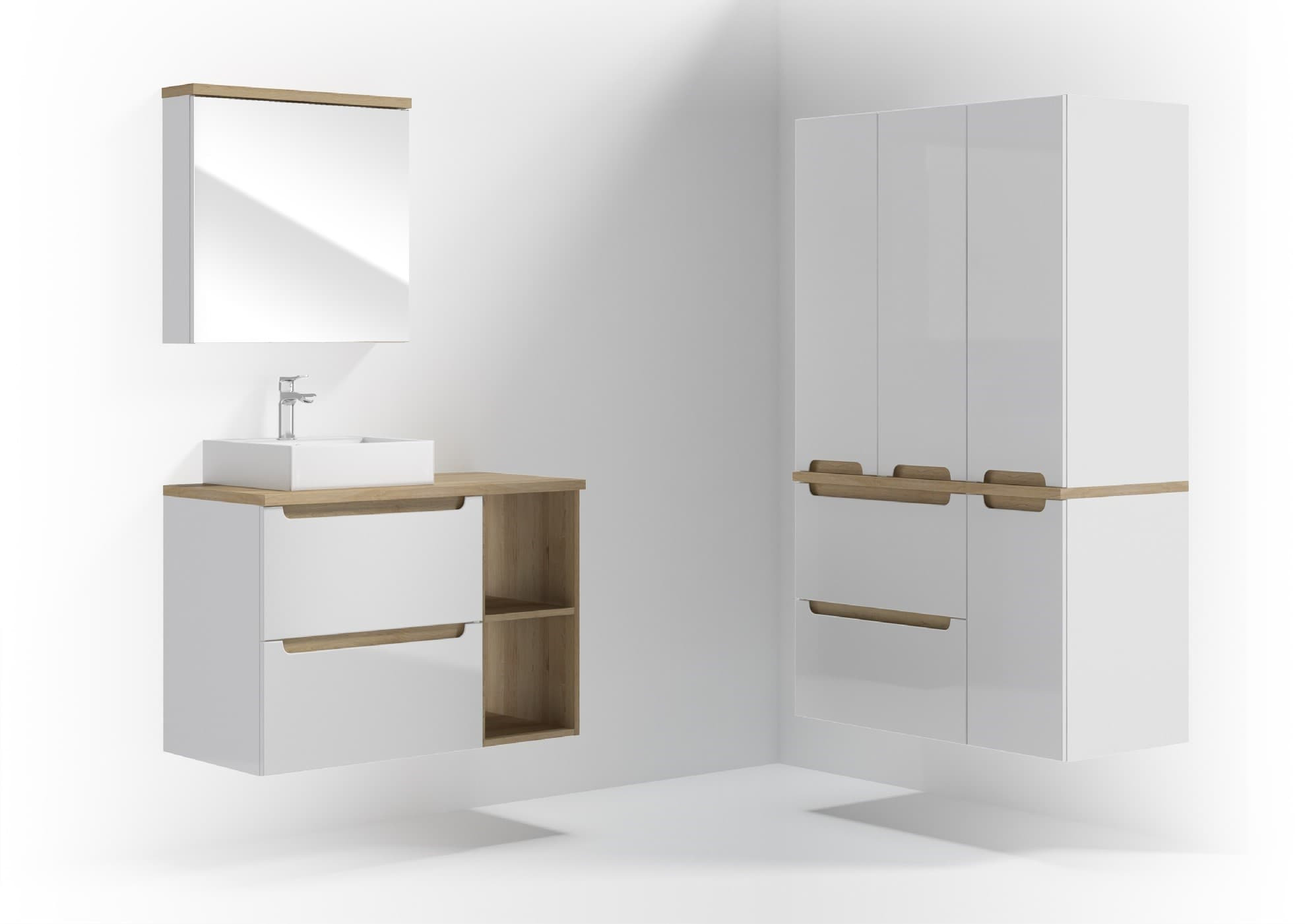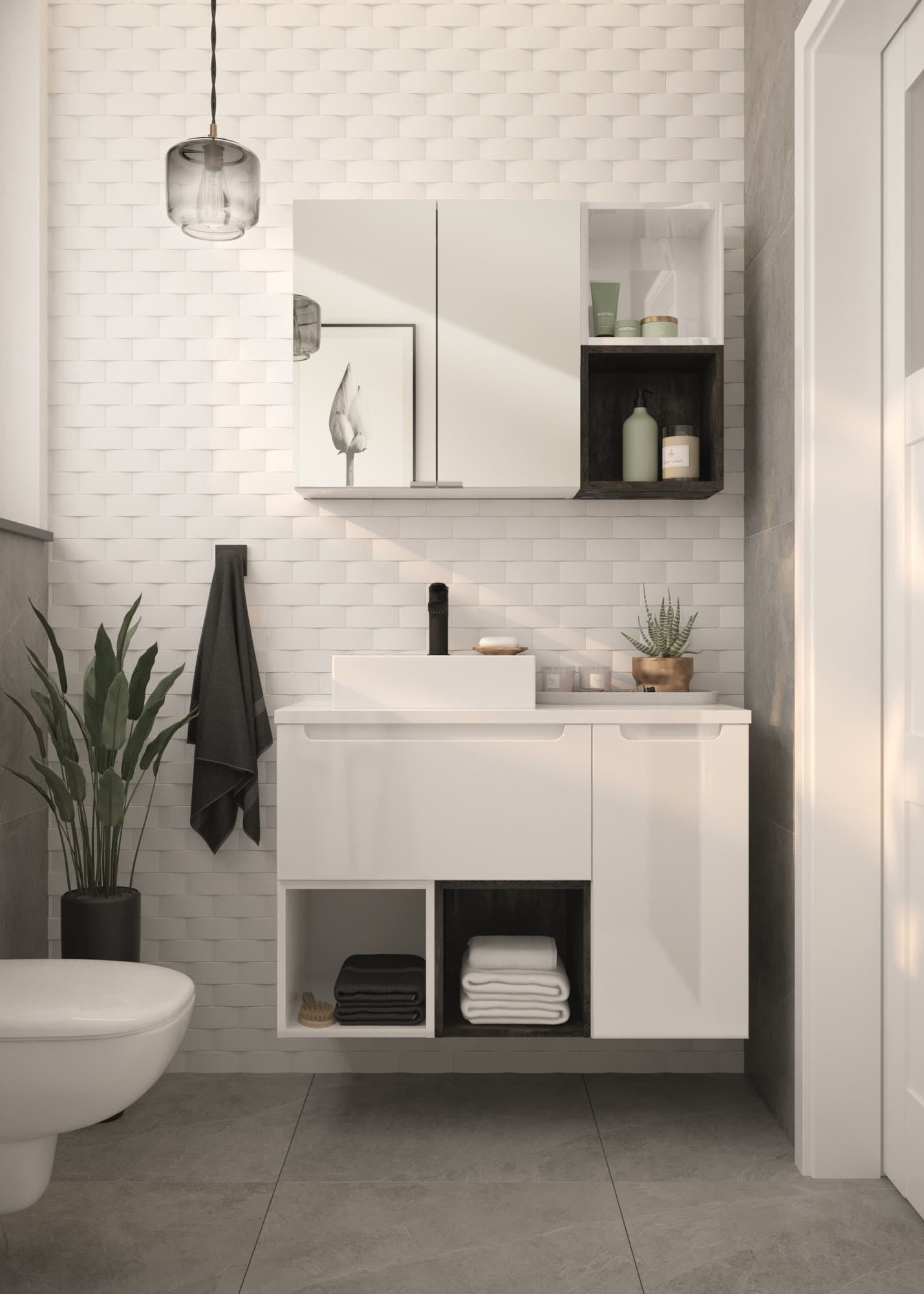 Chaque paquet du meuble Stilla est livré avec des stores de 3 couleurs : blanc brillant, noir béton et hêtre truffe, vous donnant la possibilité de décider de l'aspect final du meuble lors de l'installation, juste avant de l'accrocher. Chacune de ces couleurs souligne l’intérieur meublé de manière unique.