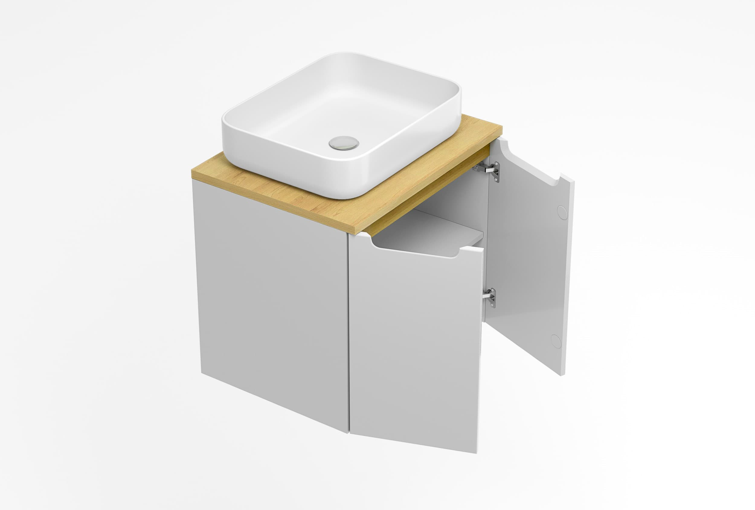 STILLAF06006 meuble sous-vasque suspendu avec plan en hêtre. Dimensions 60x60x45 cm. Façade en mélaminé laqué. Le produit est livré non assemblé, avec les instructions de montage.