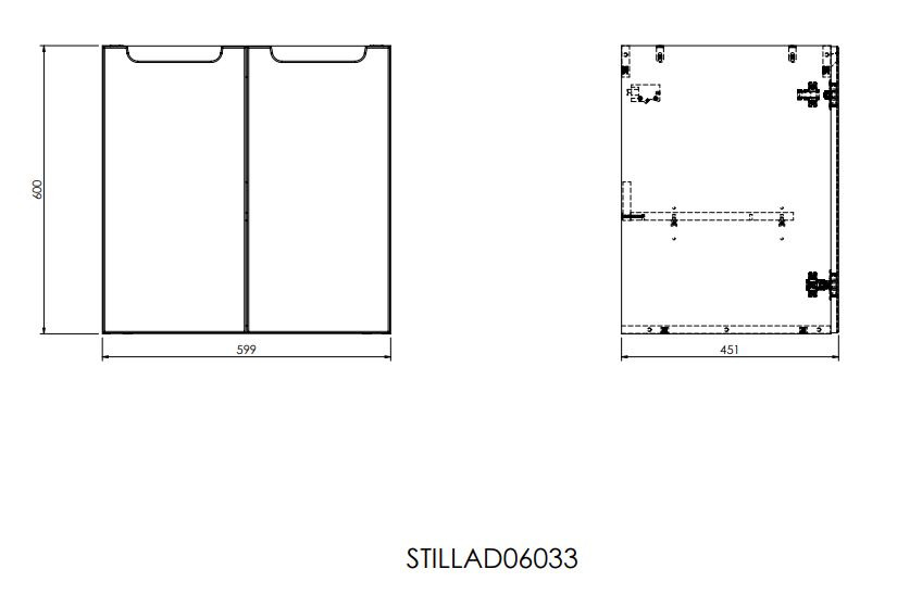 Meuble vasque suspendu Stila avec porte de dimensions 60x60x45 cm avec plaque de recouvrement. L'armoire fait partie de la collection modulaire STILLA et peut être combinée avec des armoires et des étagères supplémentaires. Cette solution vous permet d'obtenir plus d'espace de rangement pour tous les accessoires de salle de bain.