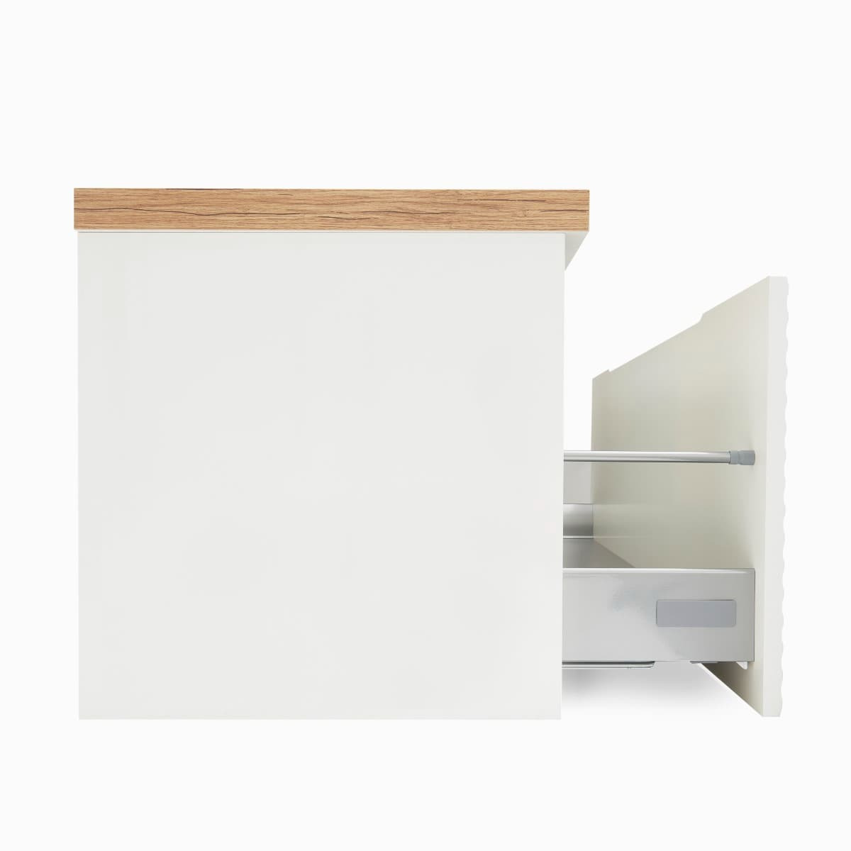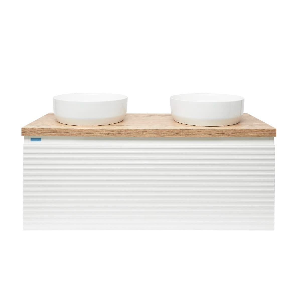 Naturel Meuble vasque strié Savona 118x43x44,8 cm blanc brillant, planche de chêne halifax (SAVONA120BIDDH)