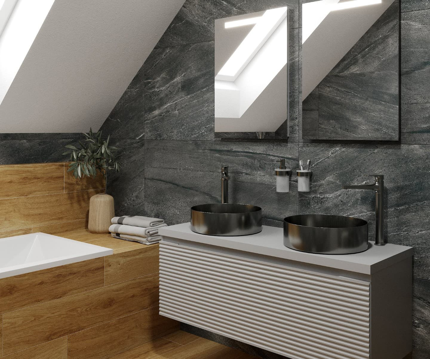 Sa façade cannelée apporte du relief et un style chic ! Associé à du carrelage à motif ou en jouant sur les nuances, vous donnerez un style chic et moderne à votre salle de bain.