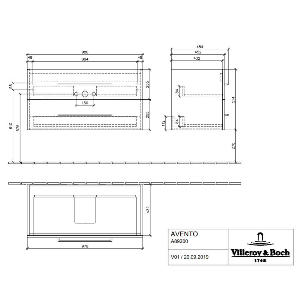 Villeroy & Boch Meuble sous plan Avento, 2 tiroirs sur rails, 976 x 514 x 484 mm, Stone Oak (A89200RK)