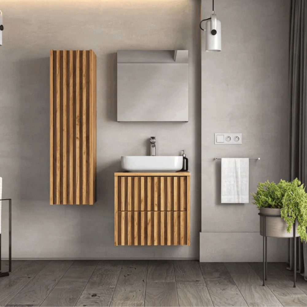 Nous vous présentons notre nouveauté, le meuble vasque de salle de bain SAT Delano en finition chêne mat. Ce meuble n'est pas seulement un élément pratique et fonctionnel de votre salle de bain, mais apporte également à votre intérieur une touche de design d'intérieur contemporain - lattes verticales.