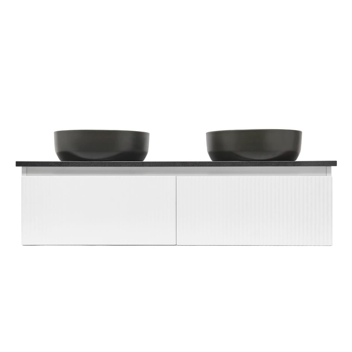 - Plaque de recouvrement de couleur noir Gobi en finition brillante mesurant 120x2x46 cm. La plaque comporte 2 trous pré-percés - pour le siphon et le robinet du lavabo.