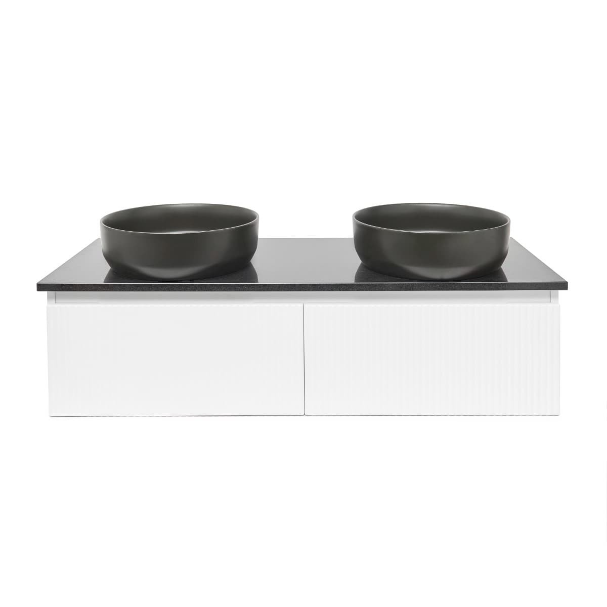- Plaque de recouvrement de couleur noir Gobi en finition brillante mesurant 120x2x46 cm. La plaque comporte 2 trous pré-percés - pour le siphon et le robinet du lavabo.