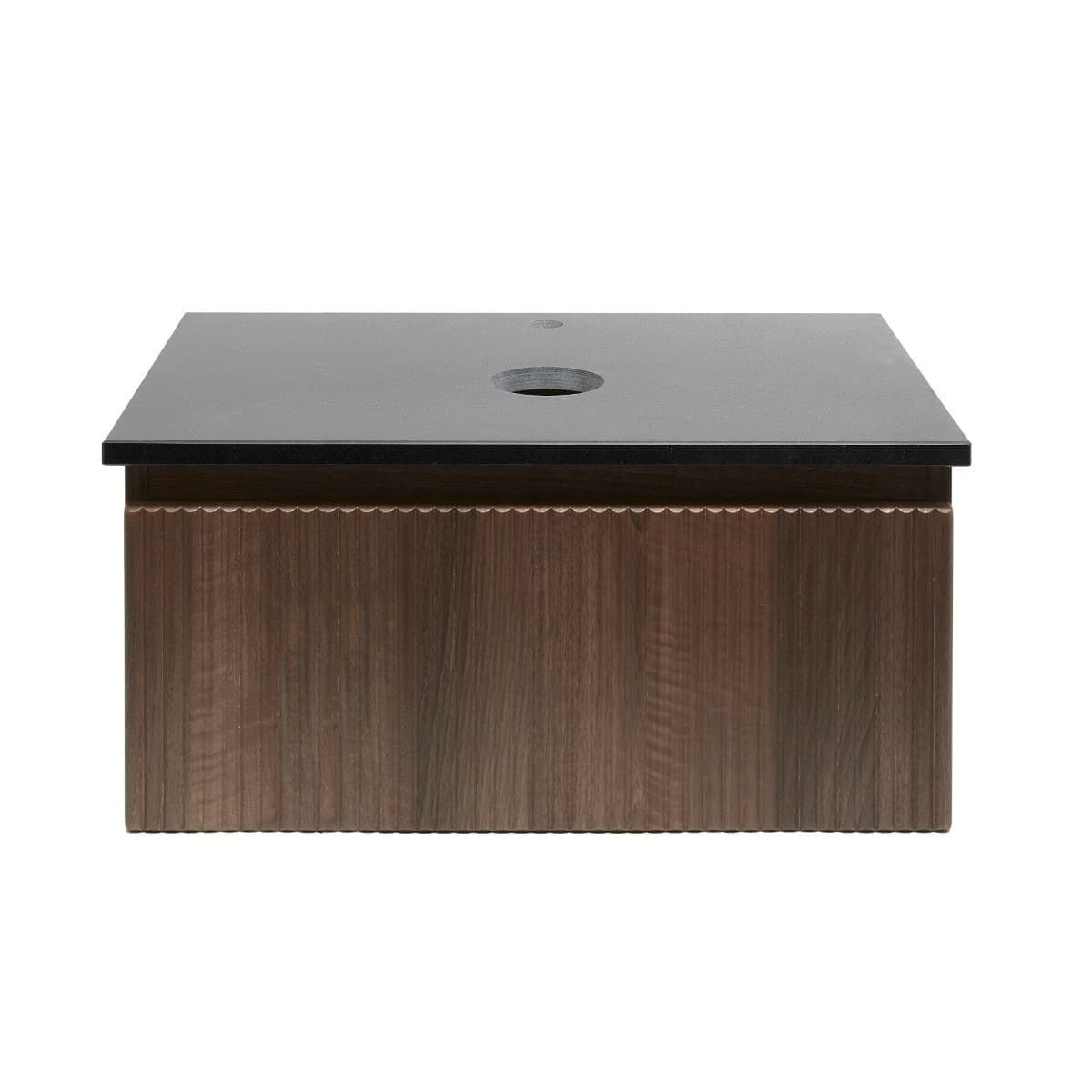 - Plaque de recouvrement de couleur noir Gobi en finition brillante de dimensions 80x2x46 cm. La plaque comporte 2 trous pré-percés - pour le siphon et le robinet du lavabo.