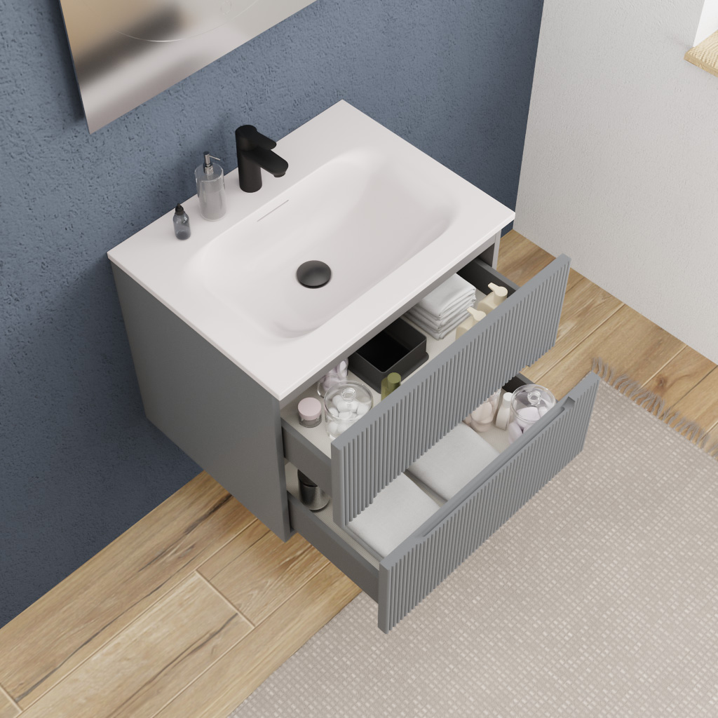 Ceramia 60 cm, meuble de salle de bain assemblé, certifié FSC, gris foncé (CERAMIA-5DG60)