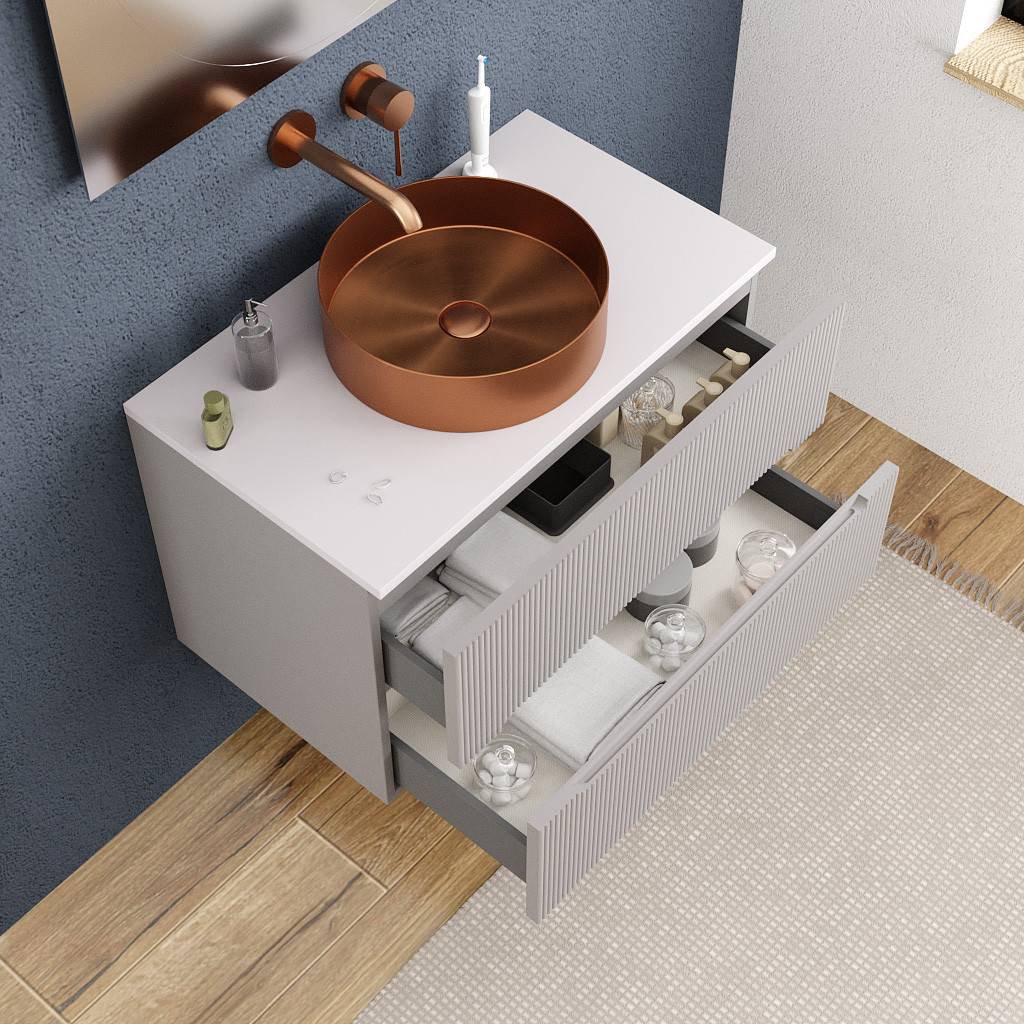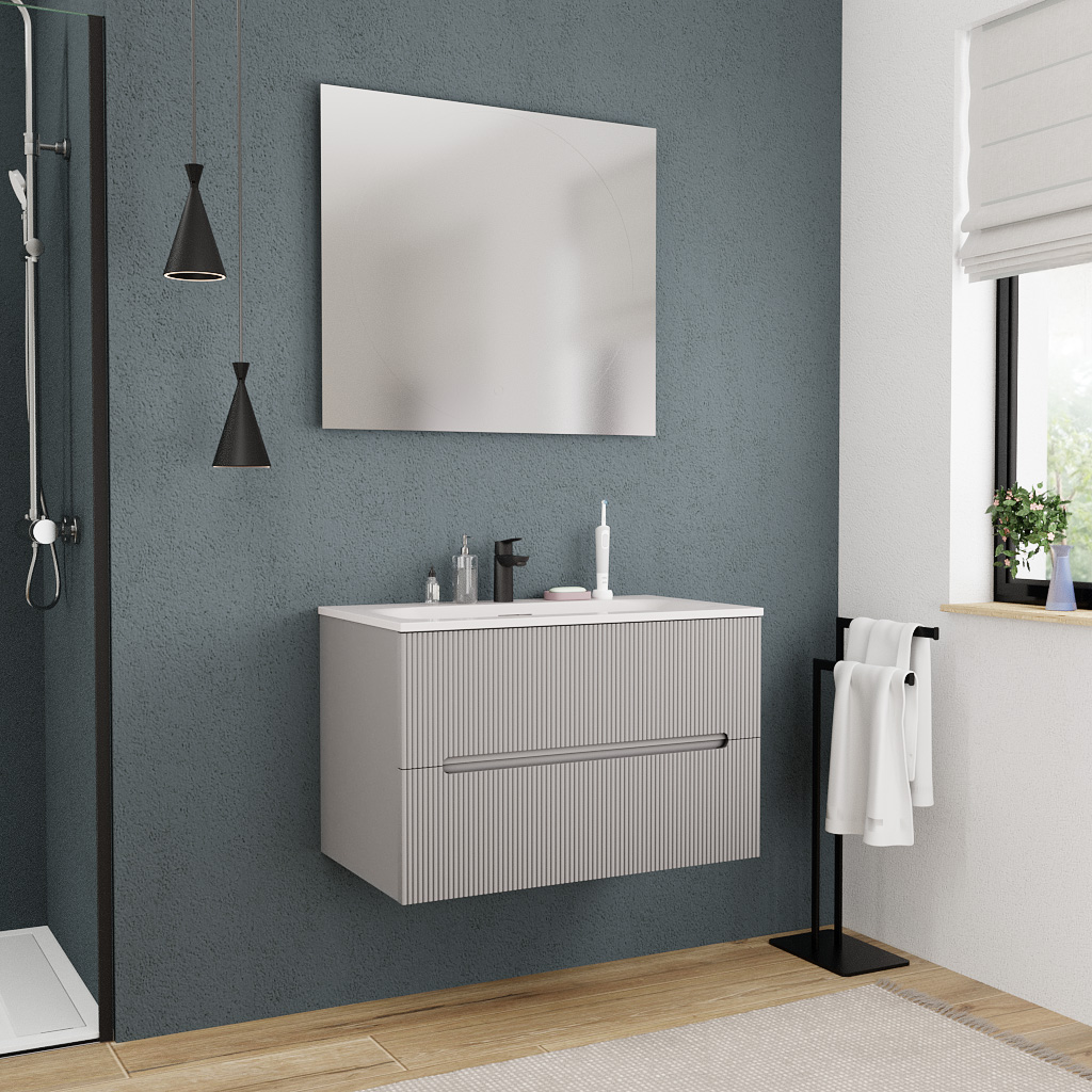 Ceramia 80cm, meuble de salle de bain assemblé, certifié FSC, gris perle (CERAMIA-5LG80)
