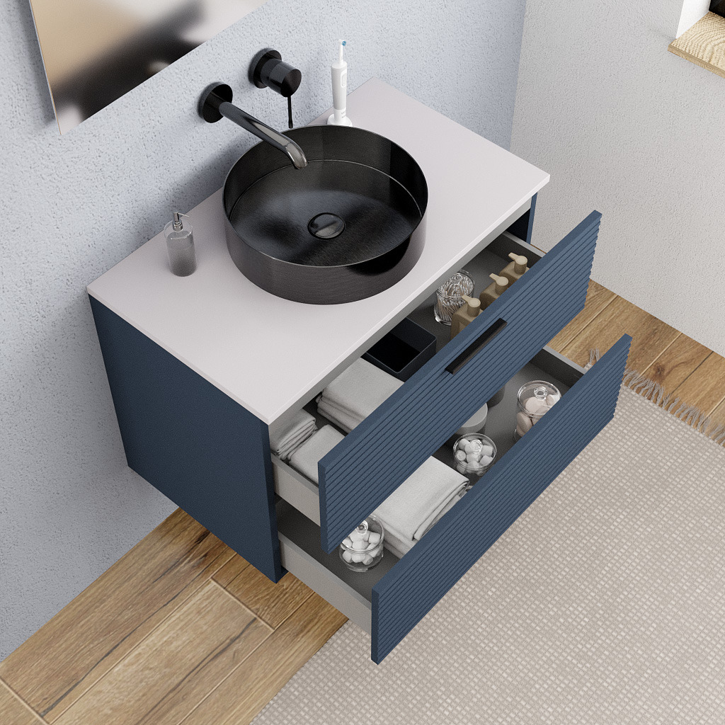 Set 80 cm : plan vasque blanc mat + meuble assemblé, bleu foncé (CERAMIA-4DB80-S)