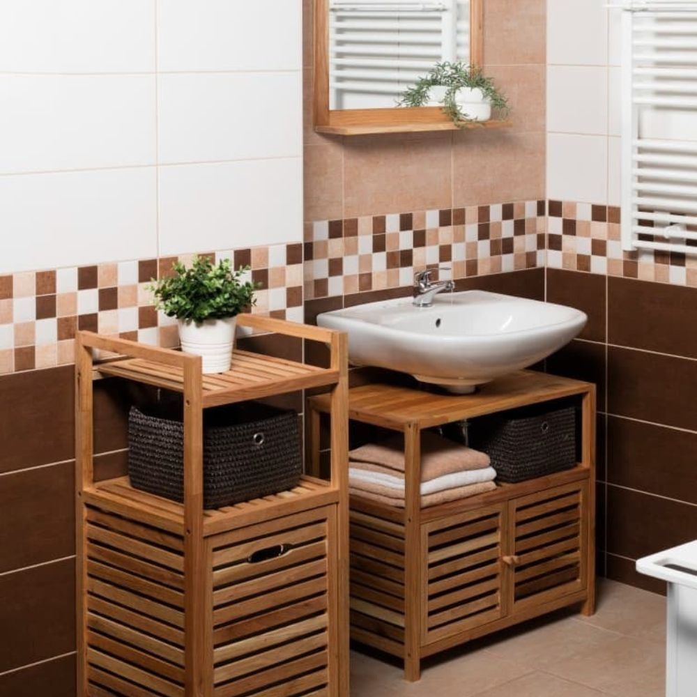 Caractéristiques du meuble de salle de bain sous lavabo Naturel Home 67,5x63x35,5 cm, bois (HOMEUM):