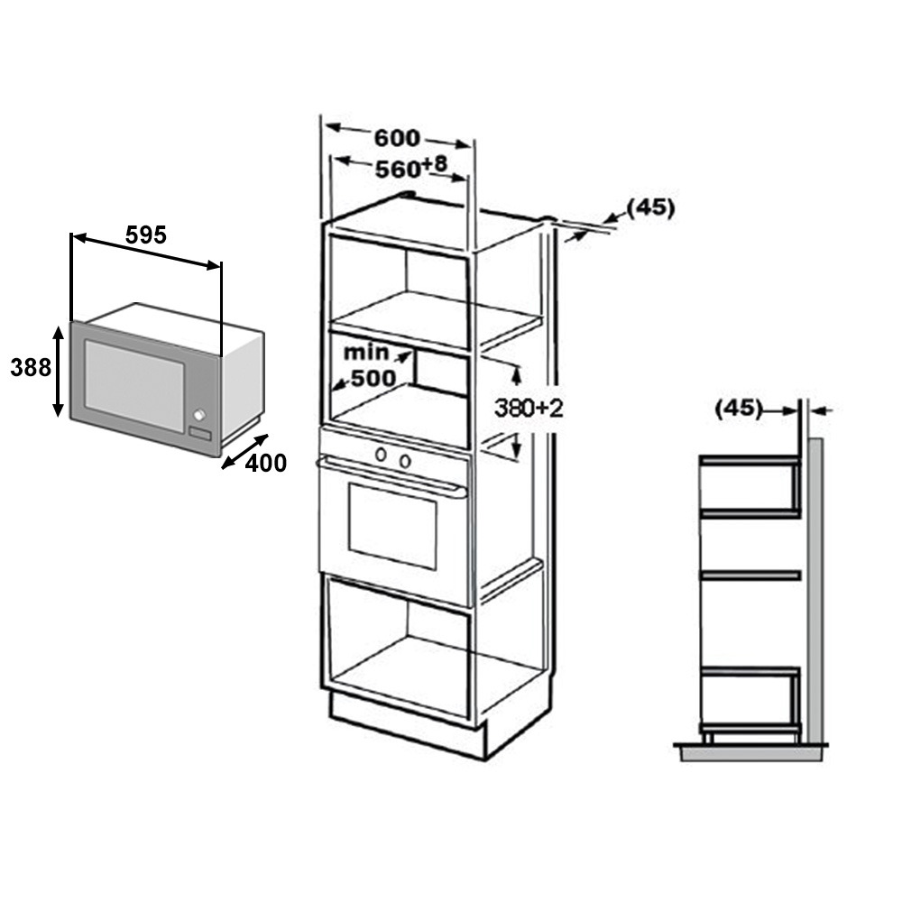 Caractéristiques du Micro-ondes grill encastrable 25L, 8 programmes + écran LCD + minuterie 95mn, Acier inoxydable :