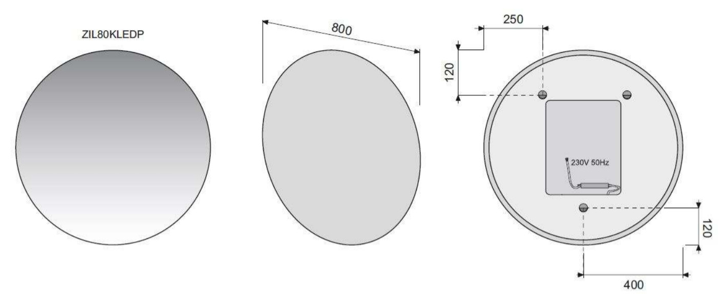 Caractéristiques du Miroir rond avec éclairage LED 80x80 cm, Naturel Iluxit (ZIL80KLEDP) :