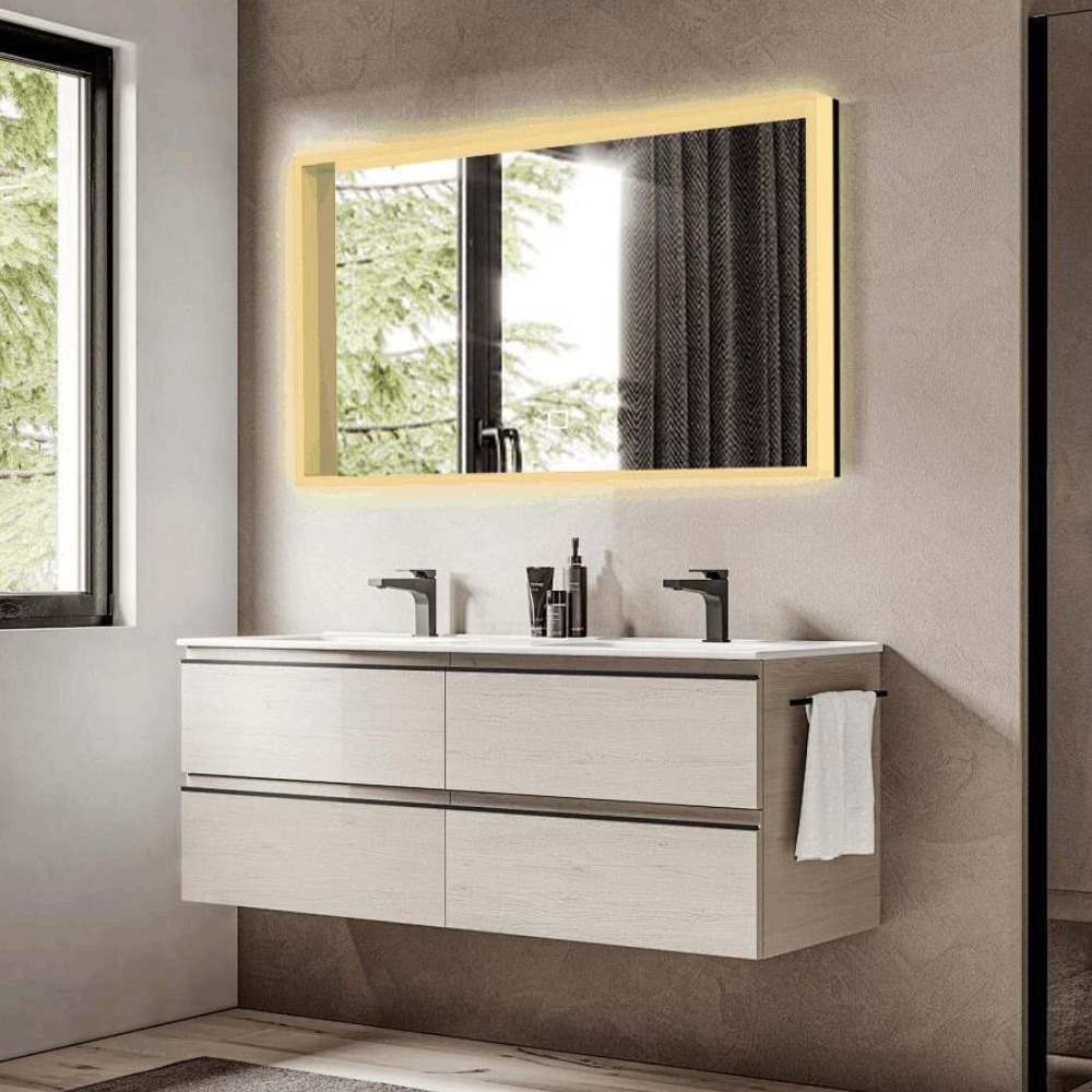 Vision 60x100 cm miroir rectangulaire avec éclairage LED 3 couleurs et capteur, transparent (SATZVIOBLED60100)