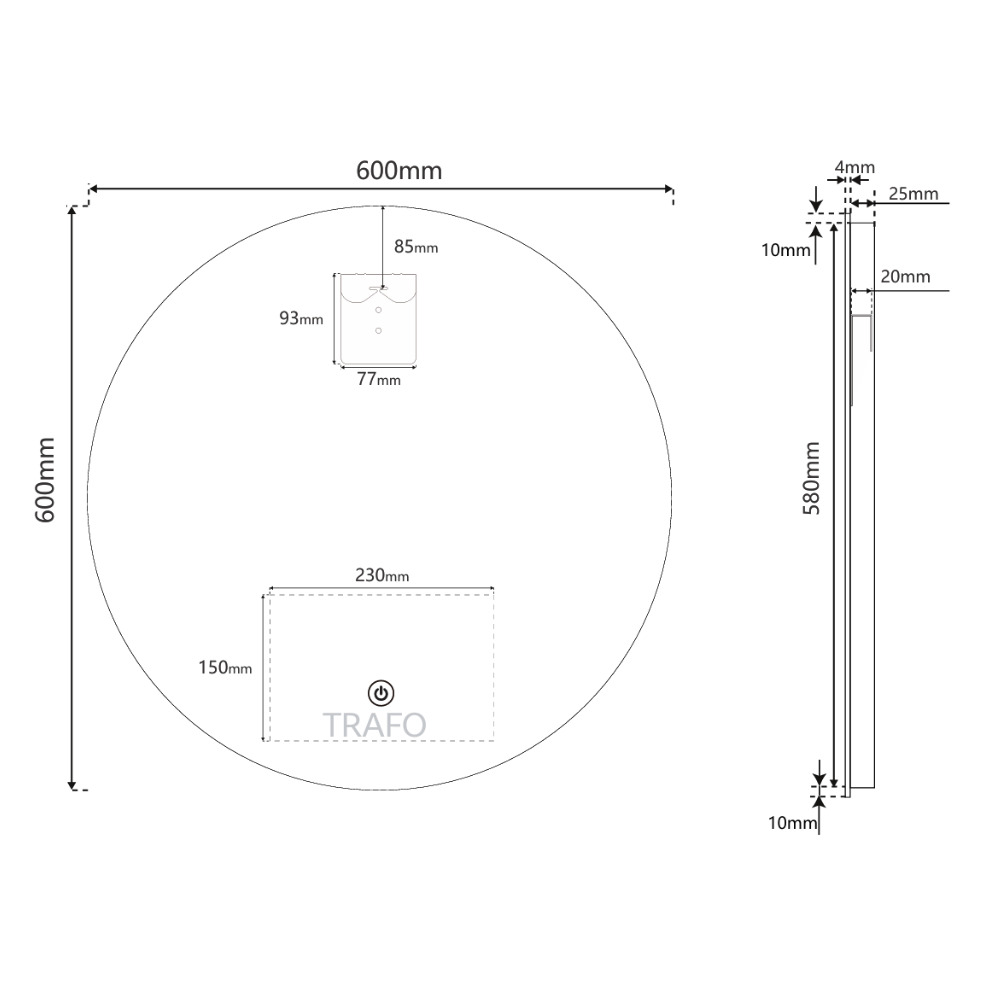 Miroir rond LED, diamètre 60cm, capteur tactile avec mémoire, anti-buée, résistance à l'eau IP44 (ZPRKU60LED)