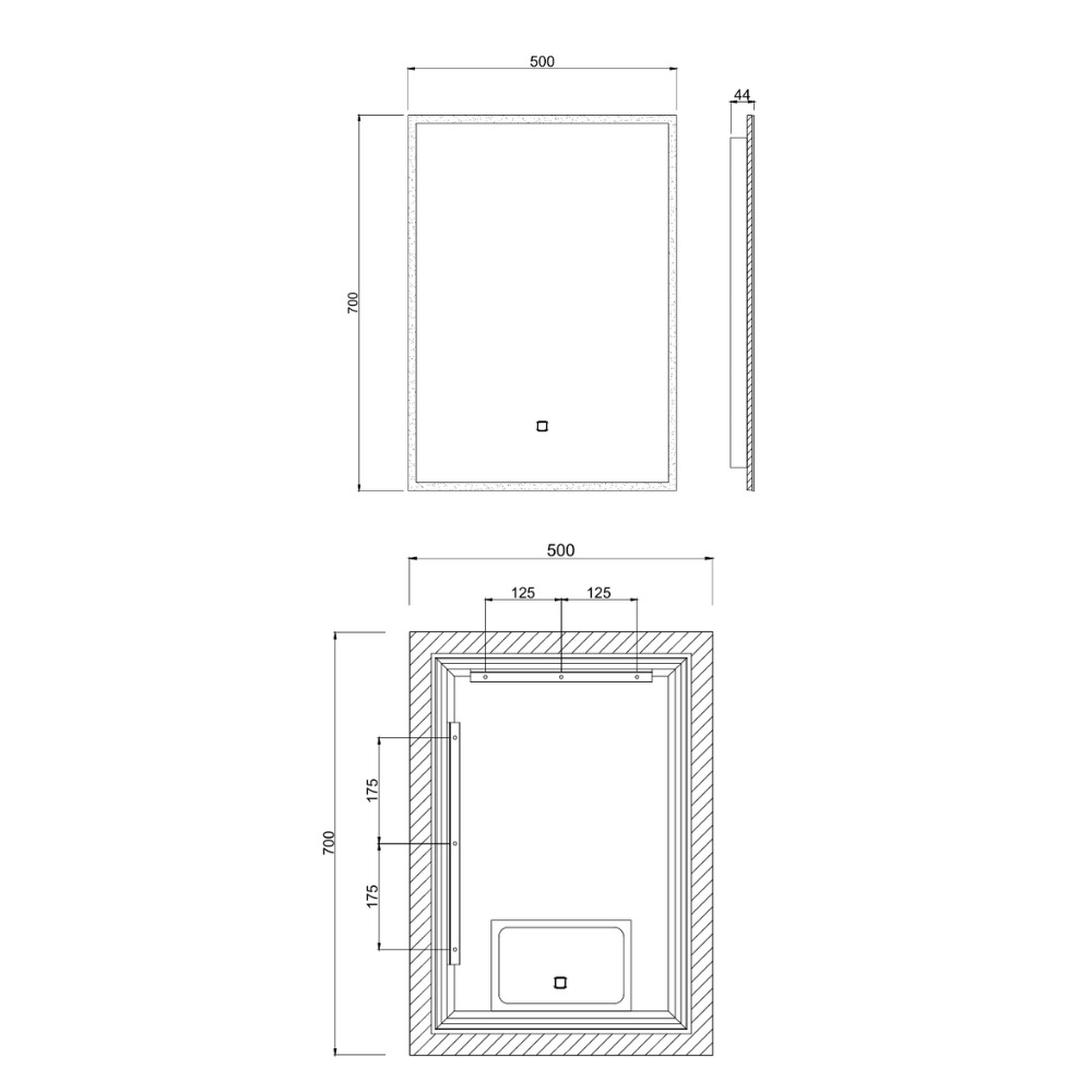 Feel 50x70 cm miroir suspendu rectangulaire avec éclairage LED 3 couleurs et capteur, blanc (SATZFEELOBLED5070)