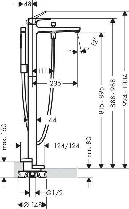 Hansgrohe Metropol Mitigeur bain/douche, set de finition, poignée étrier, chromé (74532000)