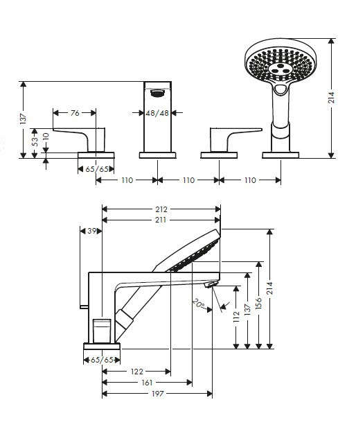 Hansgrohe Metropol Set de finition Mélangeur 4 trous pour montage sur bord de baignoire avec Secuflex, poignée étrier, chromé (74552000)