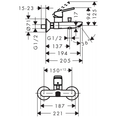 Caractéristiques du mitigeur bain/ douche Chrome Hansgrohe Logis Loop (71244000) :
