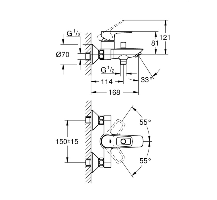 Caractéristiques du Mitigeur bain/douche à levier, Chrome, Grohe BauLoop (23602001) :
