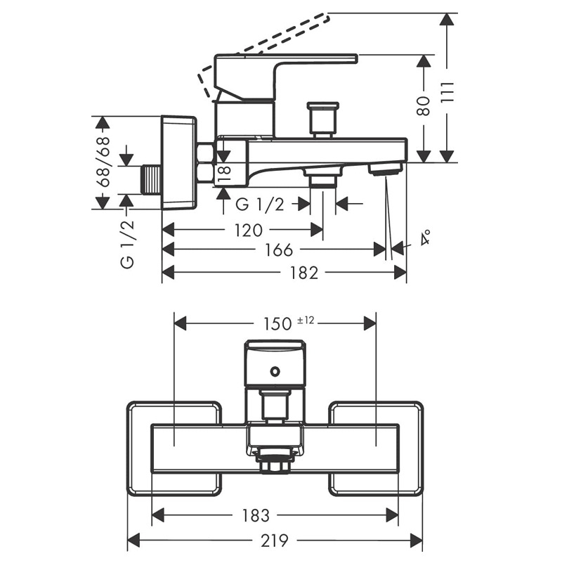 • Entraxe: 150 mm ± 12 mm