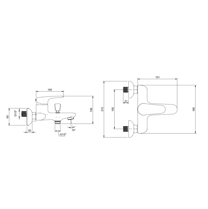 Caractéristiques du O.Novo Start Mitigeur monocommande pour baignoire, Chrome (TVT10550111061):