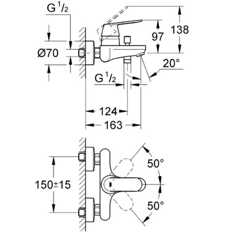 Caractéristiques du Mitigeur monocommande 1/2" bain/douche, Chrome, Grohe, Eurosmart Cosmopolitan (G-32831000) :