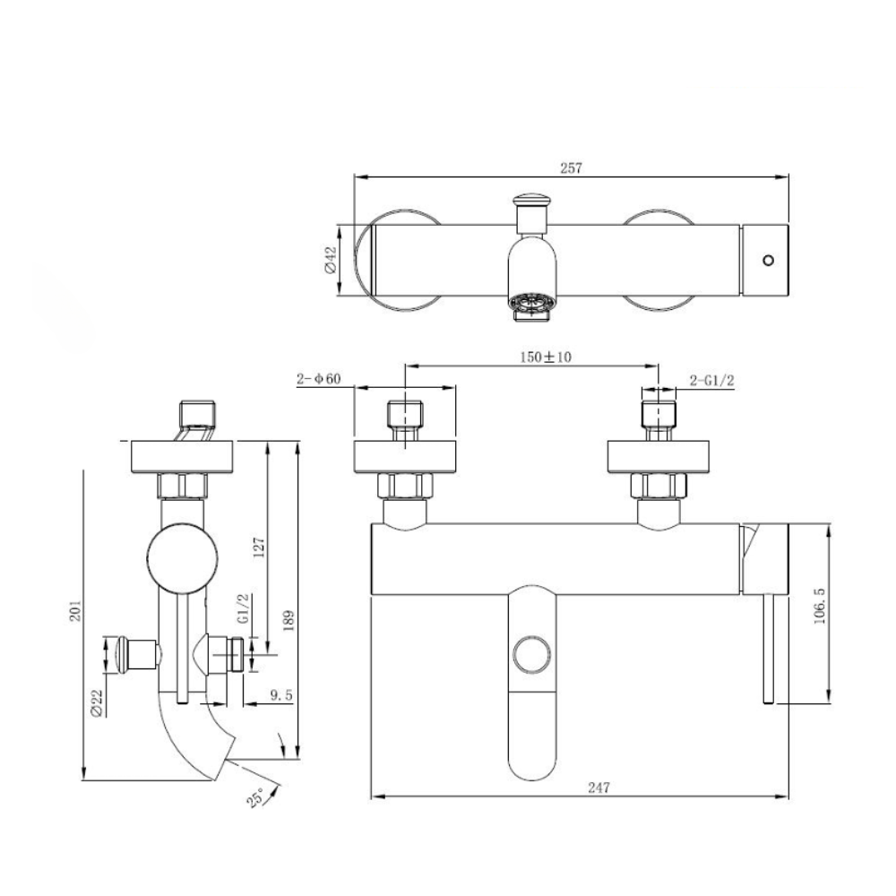 - Espacement entre les robinets : 150 mm