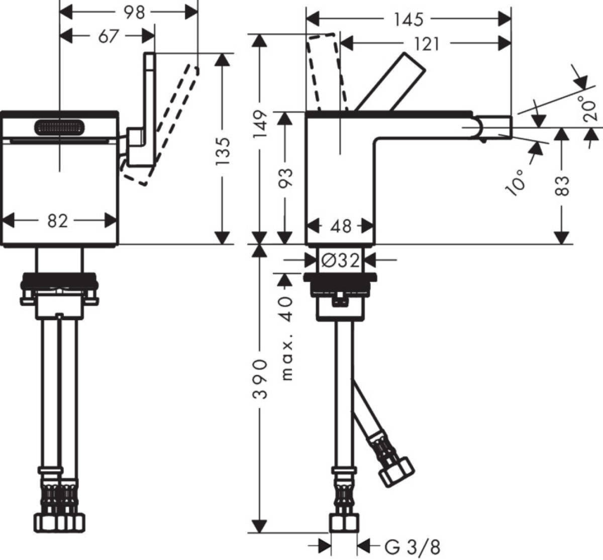 AXOR MyEdition- Mitigeur monocommande bidet, avec garniture de vidage chrome/verre noir (47210600)