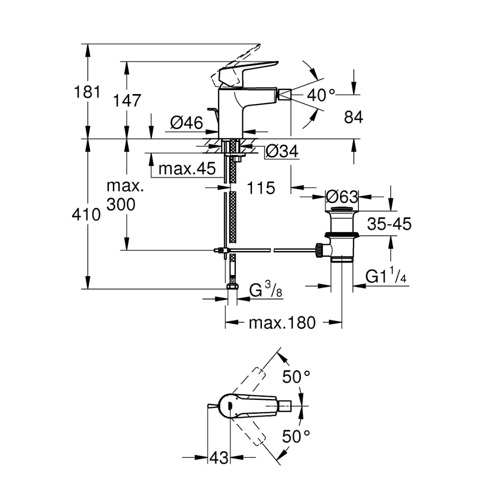 Caractéristiques du mitigeur monocommande pour bidet, taille S, Grohe Start, noir mat (325602432) :