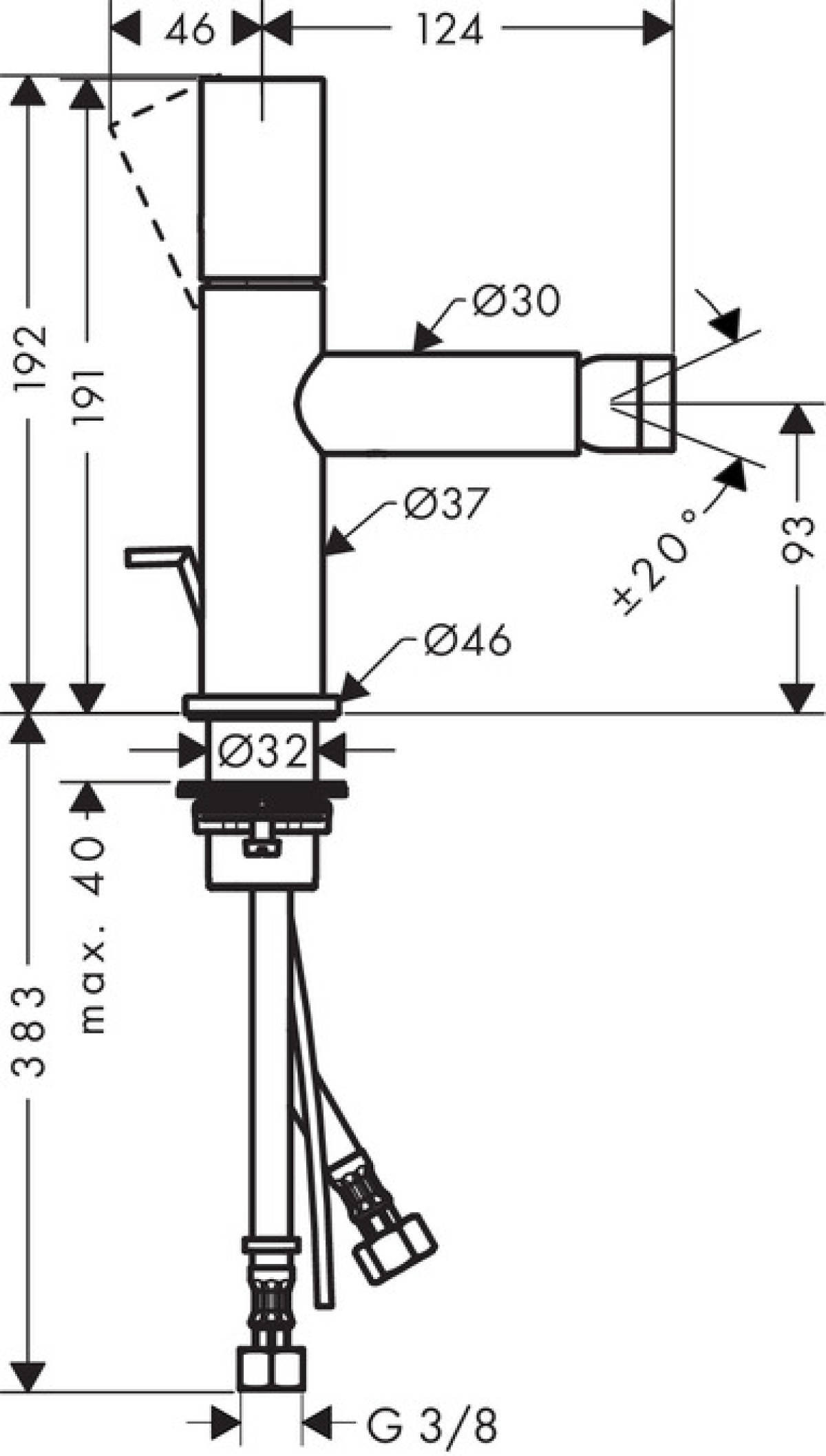 Axor UNO Mitigeur bidet, poignée zéro avec tirette et vidage, nickel brossé (45200820)