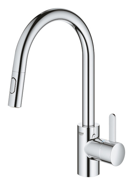 Caractéristiques du Mitigeur cuisine avec douchette extractible 2 jets, col de cygne, Chrome, Grohe Eurosmart Cosmopolitan (31481001) :